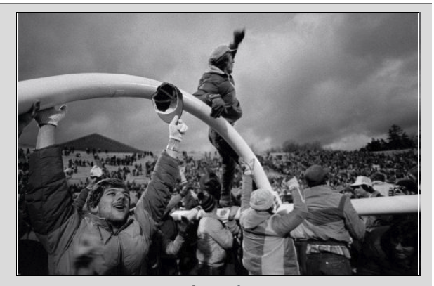 The Huskies went down in the 1982 game, and so did the goal posts |